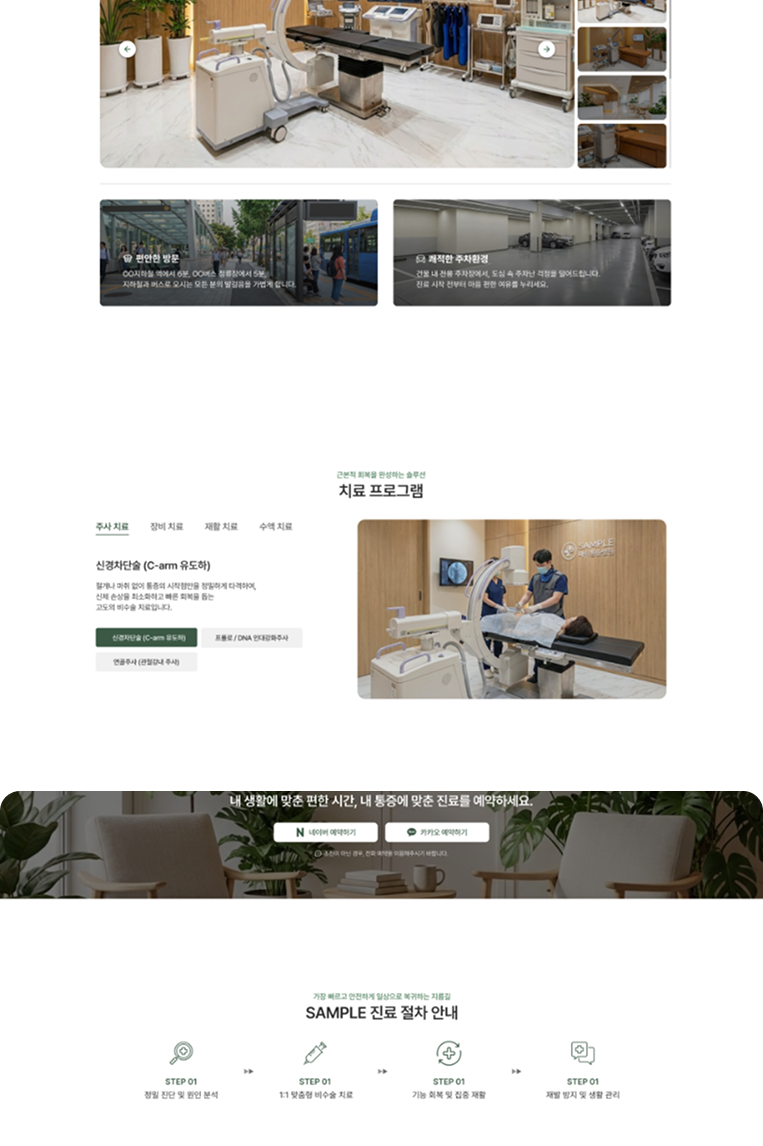 마취통증의학과 맞춤 웹 템플릿은 통증 치료의 핵심 정보를 한 흐름으로 전달하는 병원 특화 웹 프로젝트입니다.