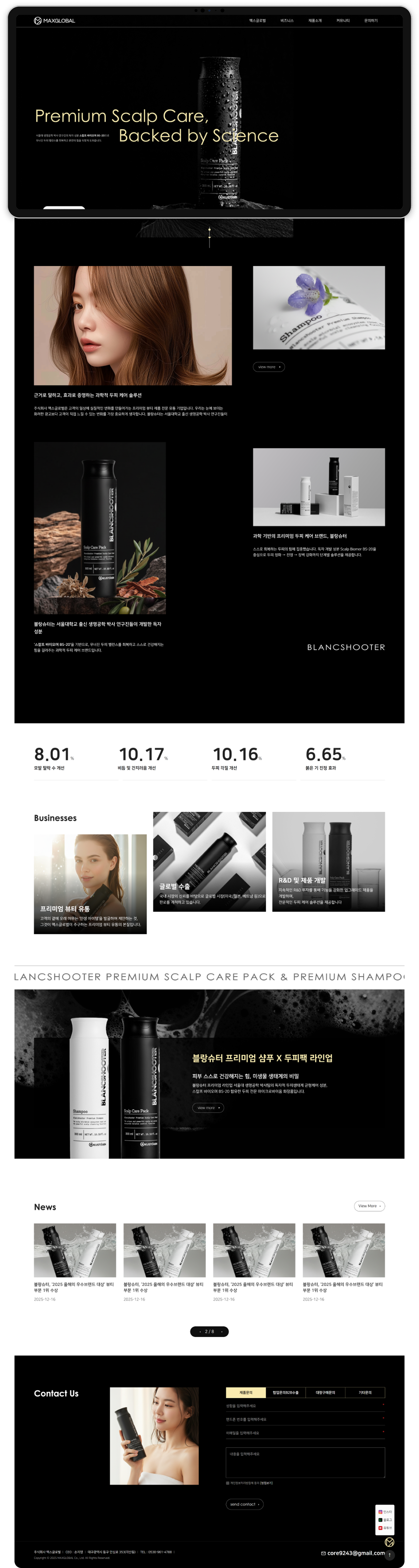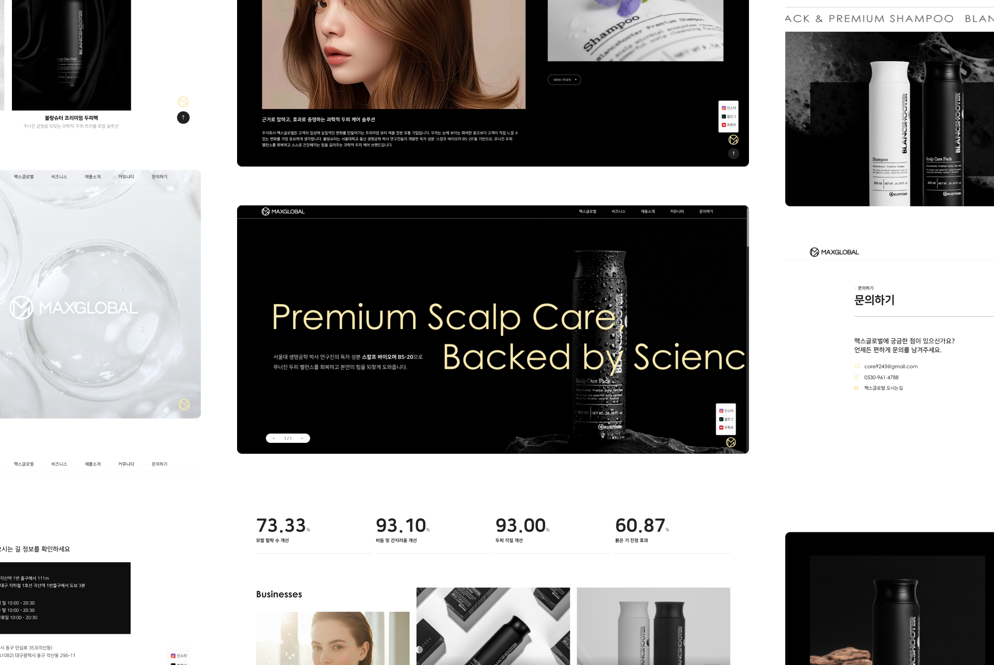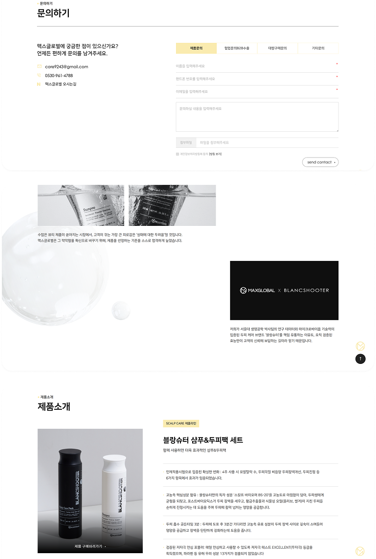맥스글로벌 홈페이지는 블랑슈터 브랜드의 정체성과 프리미엄 톤앤매너를 일관되게 전달하기 위해 설계된 디지털 브랜드 홈페이지입니다.